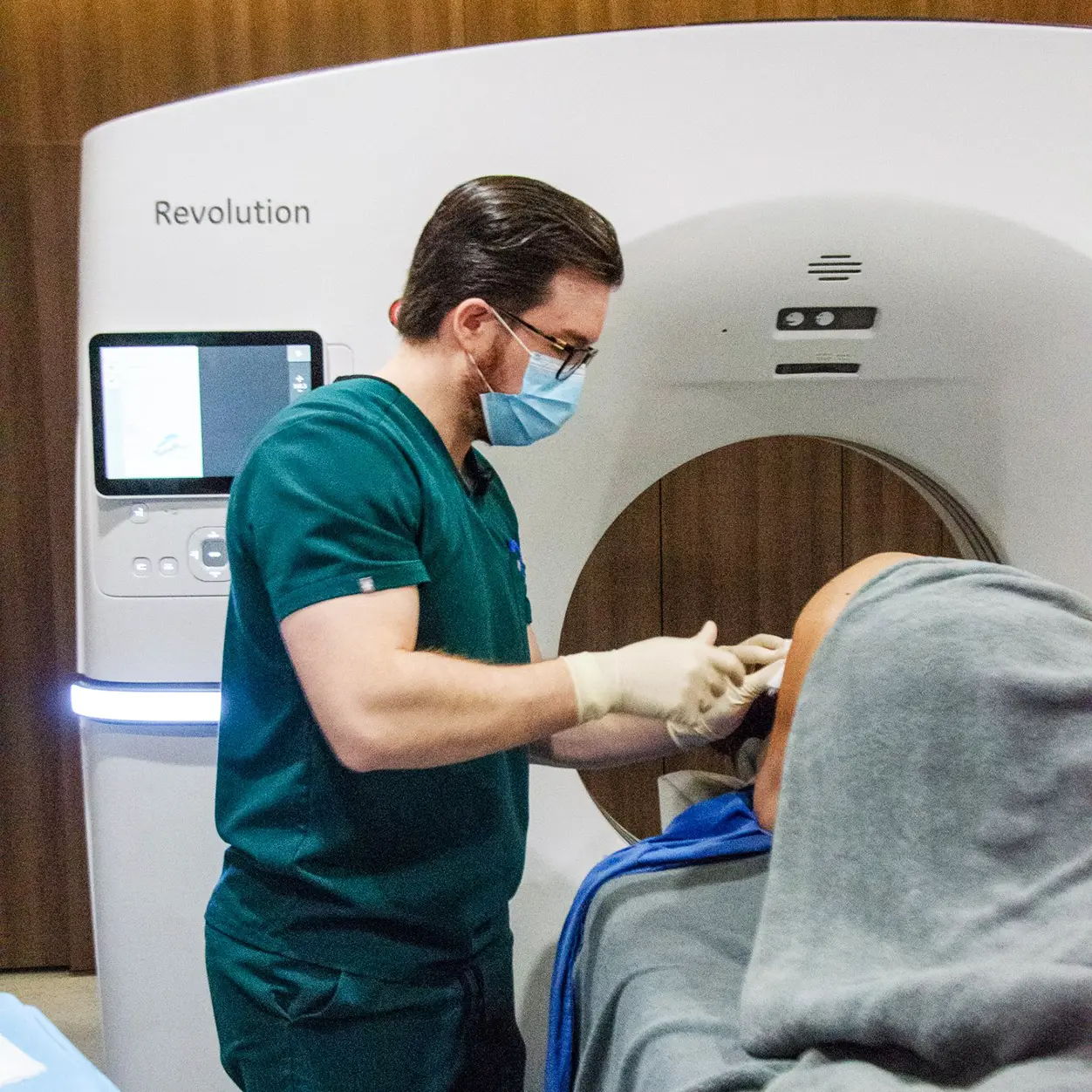 Radiólogo intervencionista especializado en diagnósticos y tratamientos mínimamente invasivos guiados por imagen.